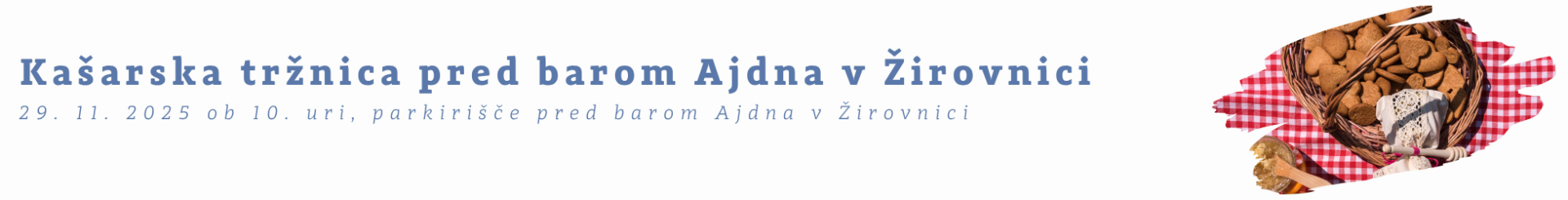 Pridružite se nam na Kašarski tržnici pred barom Ajdna! Čaka vas sproščeno druženje, domači izdelki, lokalne dobrote in prijetna glasba v dobri družbi.
