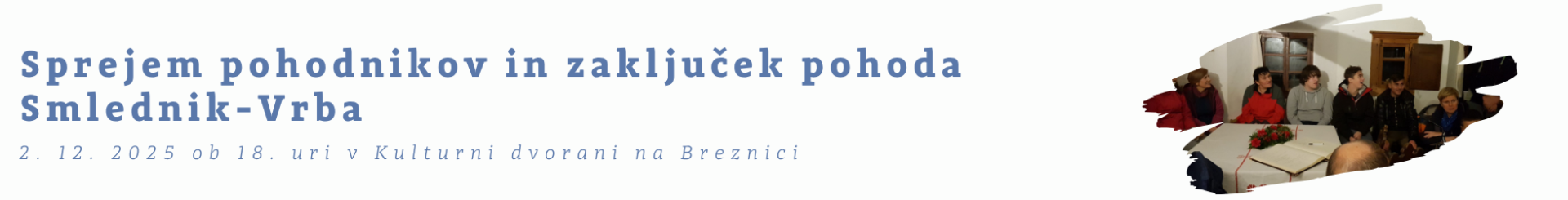 Vabljeni na sprejem pohodnikov in zaključek pohoda Smlednik-Vrba, ki ga tradicionalno organizira Vzgojno-izobraževalni center Frana Miličinskega Smlednik. Občina Žirovnica in Zavod za turizem in kulturo Žirovnica bosta pohodnikom, otrokom in učiteljem pripravila prijazen sprejem z manjšo pogostitvijo. Pridružite se nam in skupaj proslavimo uspešen zaključek pohoda!