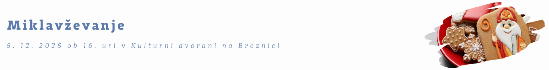 Vabljeni na dogodek Miklavževanje, ki se bo oodvijal v Kulturni dvorani na Breznici. Dogodek organizira Župnija Breznica.